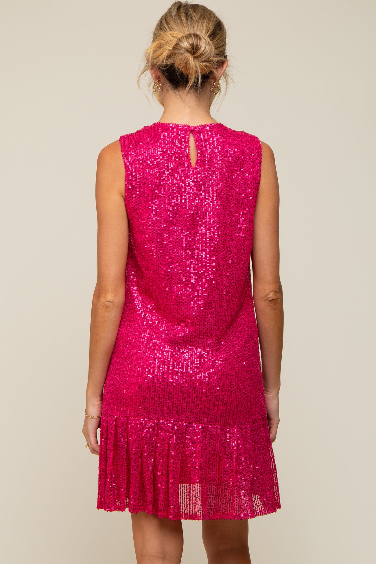 Fuchsia Sequin Sleeveless Ruffle Hem Maternity Dress