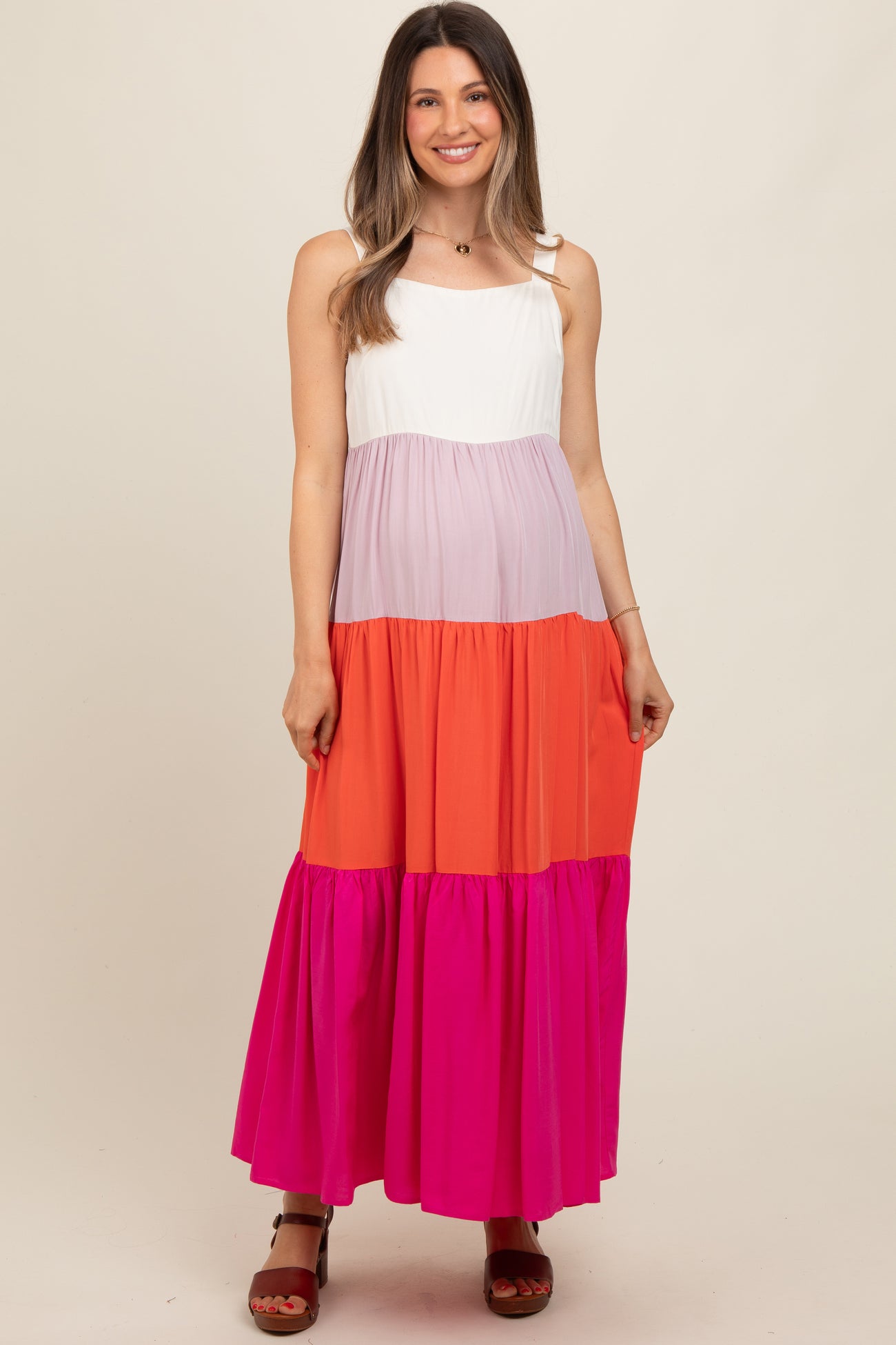 Fuchsia Tiered Colorblock Maternity Maxi Dress