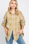 Gold Plaid Button Up Raw Edge Maternity Flannel Top