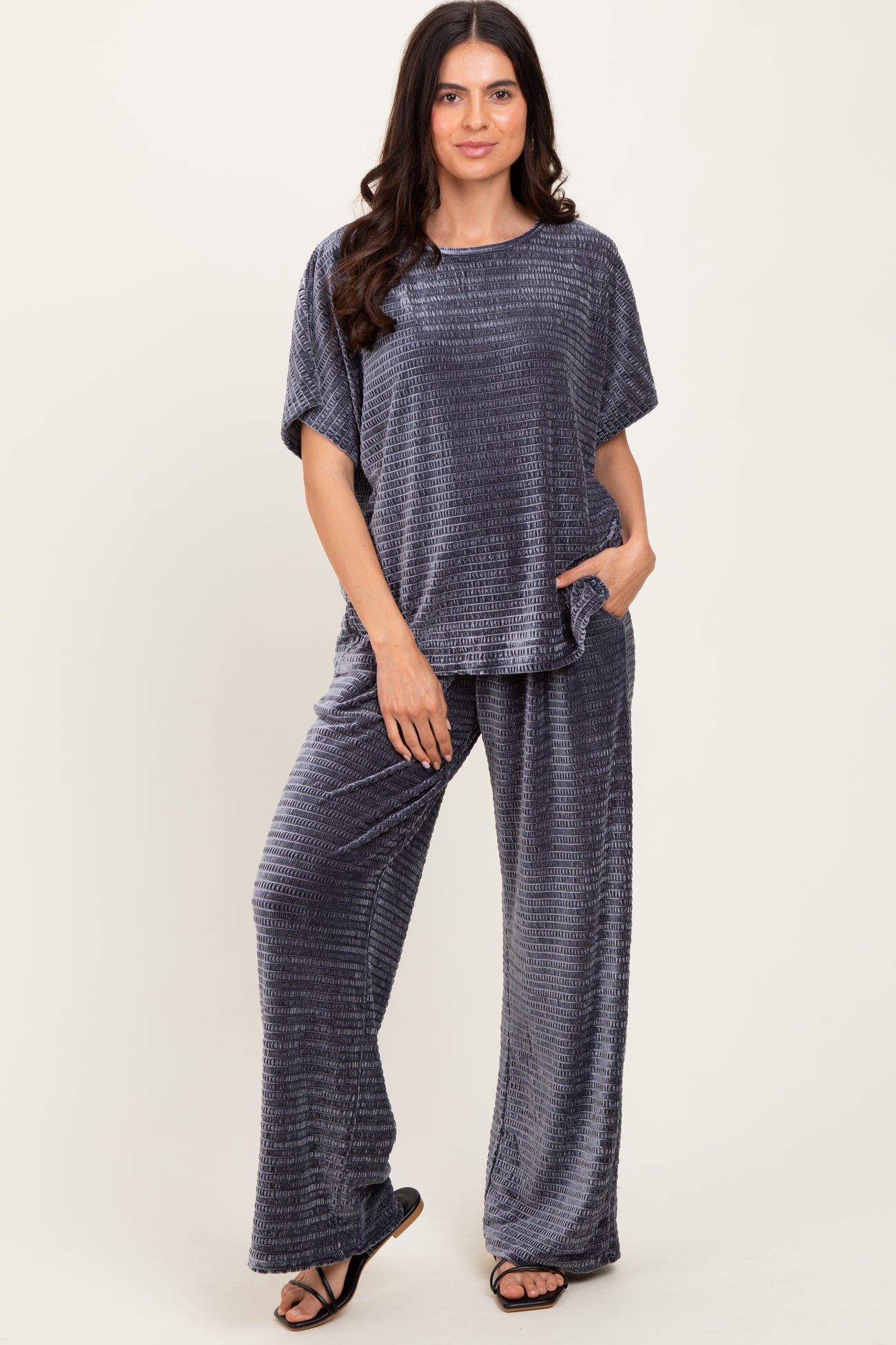 Gray Blue Textured Velvet Lounge Pant Maternity Set