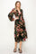 Green Chiffon Floral Long Sleeve V-Neck Maxi Dress