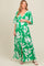 Green Floral Double V-Neck Front Slit Maternity Maxi Dress