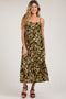 A floral print maternity dress with a sweetheart neckline, puff sleeves smocked back and ruffle hem. Dress is double lined.