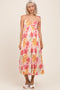 Green Floral Ruffle Sleeve Tiered Midi Dress