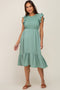 Black floral maternity dress with a rounded neckline, a smocked bodice, long sleeves, and a back keyhole button closure. Skirt is lined.