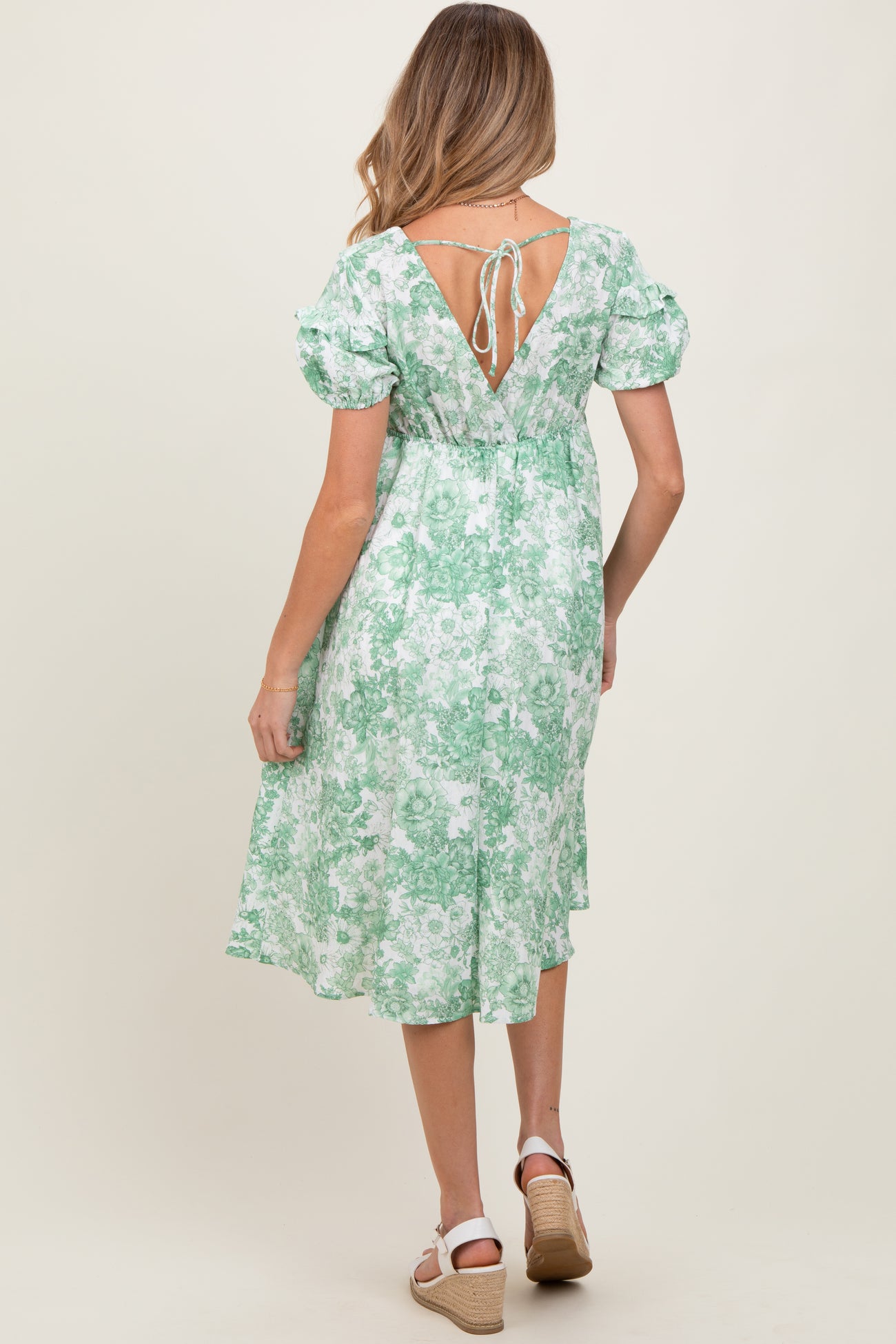 Green Floral Woven Short Sleeve Maternity Mini Dress