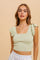 Green Tie Waist Square Neck Ruffle Sleeve Sweater Top