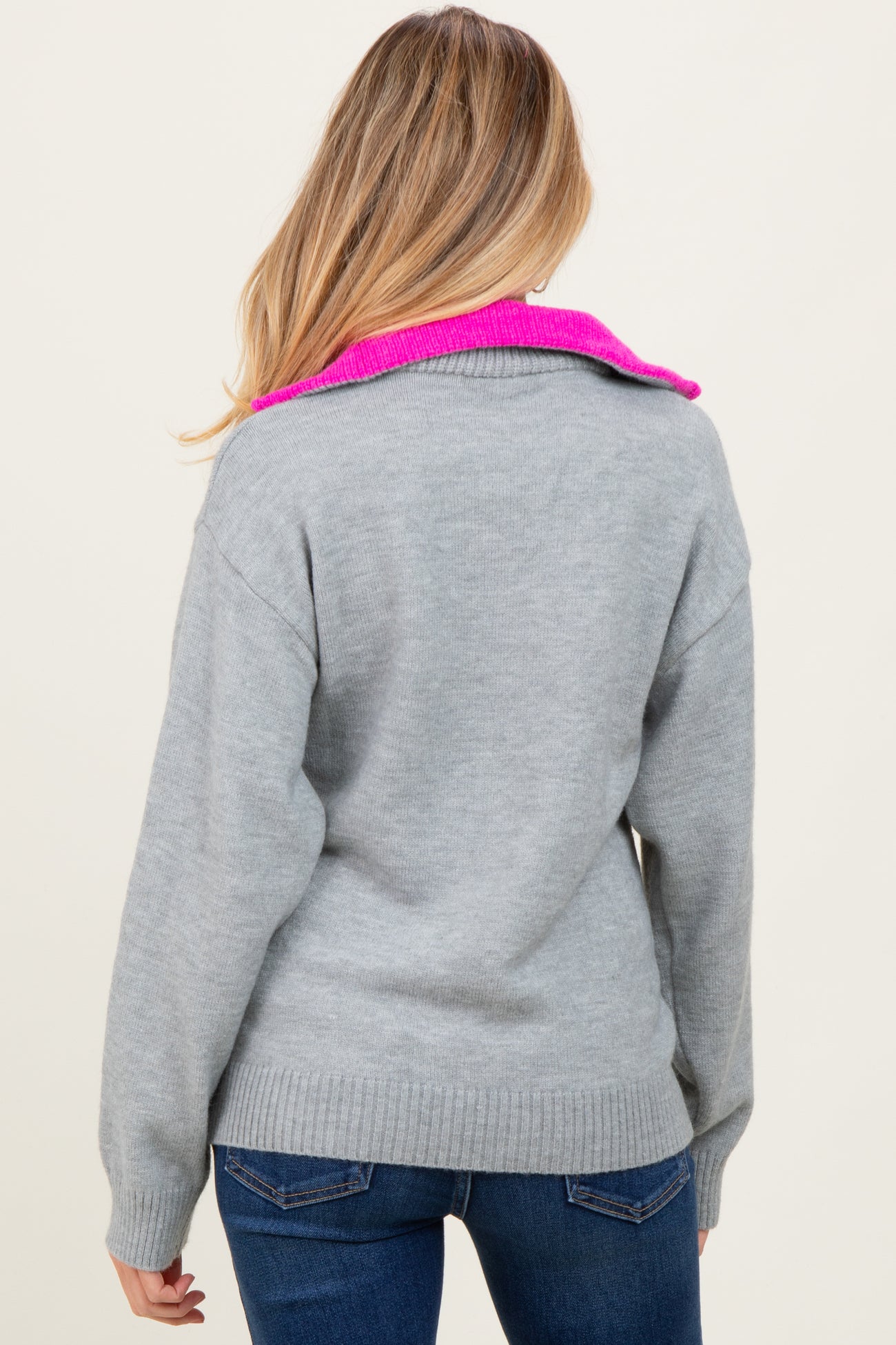 Heather Grey Contrast Collar Half Zip Maternity Sweater