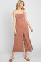 A basic set with cropped pants featuring an elastic smocked waistband. A short sleeve tee with a v-neckline.