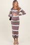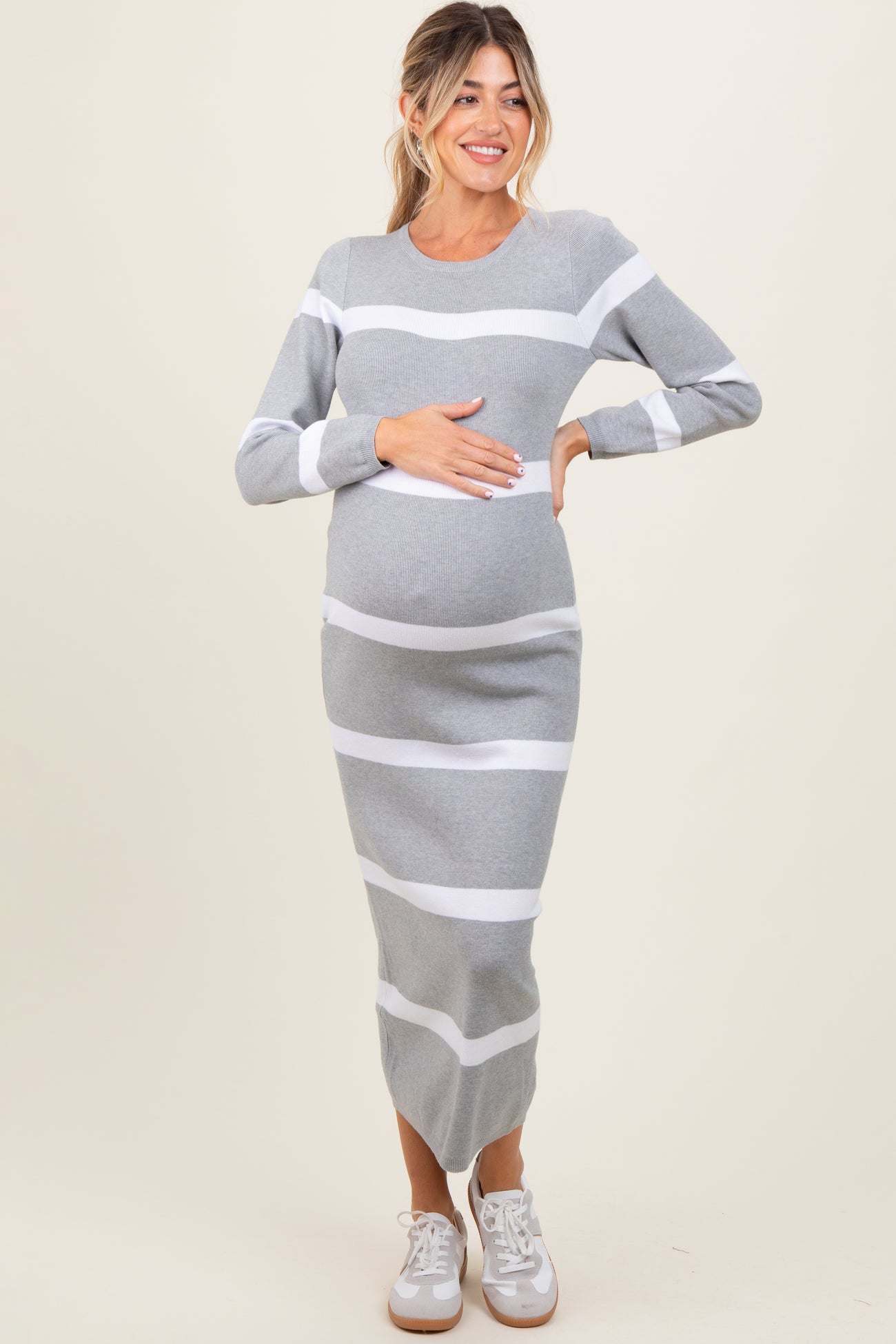 Heather Grey Striped Knit Long Sleeve Maternity Midi Sweater Dress