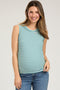 A solid ribbed maternity cami top with adjustable straps and a snap button front detail. Rounded hem.