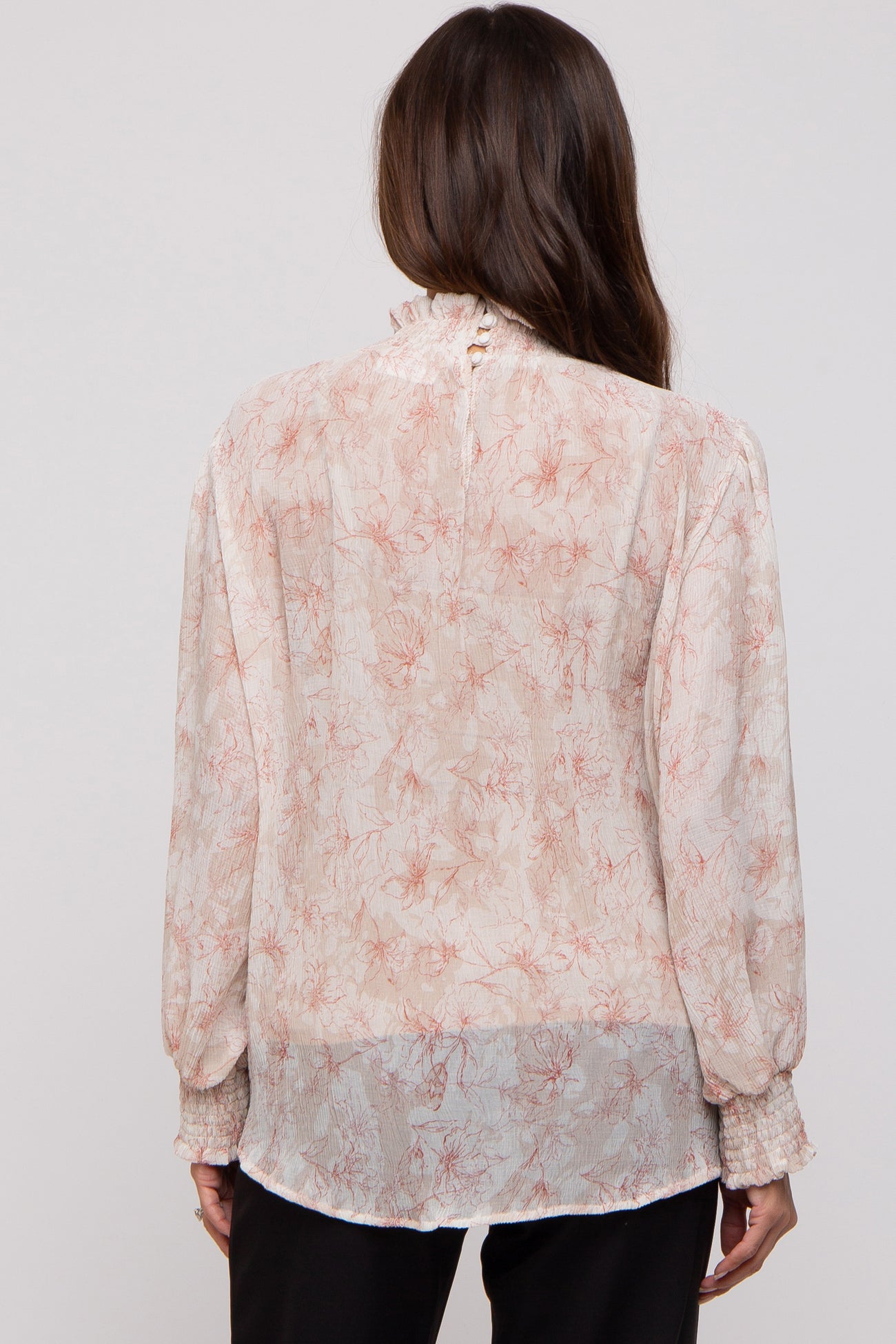 Ivory Floral Plisse Mock Neck Maternity Blouse