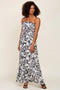 A floral maternity dress that features short puff sleeves, a v-neckline, side pockets, a back keyhole button closure, and a gathered bottom hem.