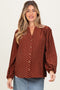 Ivory Polka Dot Long Sleeve Button Down V-Neck Maternity Top