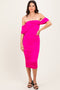 Lavender Off Shoulder Draped Ruched Midi Dress