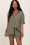 Lavender Short Sleeve Button Down Shirt Shorts Set