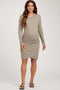 A solid hued maternity maxi dress featuring a smocked top, a square neckline, short puff sleeves, side pockets and a tiered skirt.