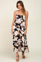 A floral chiffon maternity dress featuring a sweetheart neckline, short flutter sleeves, a smocked elastic back and double lined.