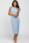 Light Blue Ribbed Open Back Maternity Midi Dress