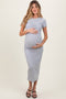 Light Blue Ruched Bust Short Sleeve Maternity Maxi Dress