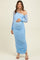 Light Blue Ruched Mesh One Shoulder Long Sleeve Maternity Maxi Dress