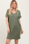 Light Olive Brushed Rolled Short Sleeve V-Neck Maternity Dress