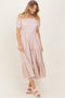 Embrace comfort and style with our Light Olive Floral Lace Trim Smocked Maternity Maxi Dress. Crafted from soft, breathable fabric, this dress features a flattering smocked bodice that stretches to accommodate your growing bump. The delicate floral print in soothing light olive adds a touch of nature-inspired charm, perfectly complemented by the feminine lace trim along the square neckline. With puffed sleeves and a tiered maxi skirt, this dress offers an effortlessly elegant silhouette for any season. Ideal for casual outings, baby showers, or relaxed weekends, it's a versatile must-have that combines maternity comfort with timeless fashion.
