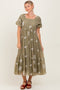 Light Olive Floral Print Ruffle Hem Maternity Midi Dress