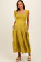 Light Olive Smocked Sleeveless Drawstring Shoulder Tiered Midi Dress