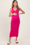 Light Olive/Soft White High Neck Ribbed Sleeveless Maternity Midi Dress