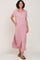 A solid short sleeve midi dress with collared neckline, front pocket detail, button down closure in front, hidden side pockets and rounded split hem.