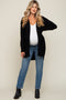 A solid hued maternity cardigan featuring a button front closure, long sleeves, two pockets and hi-low hem.