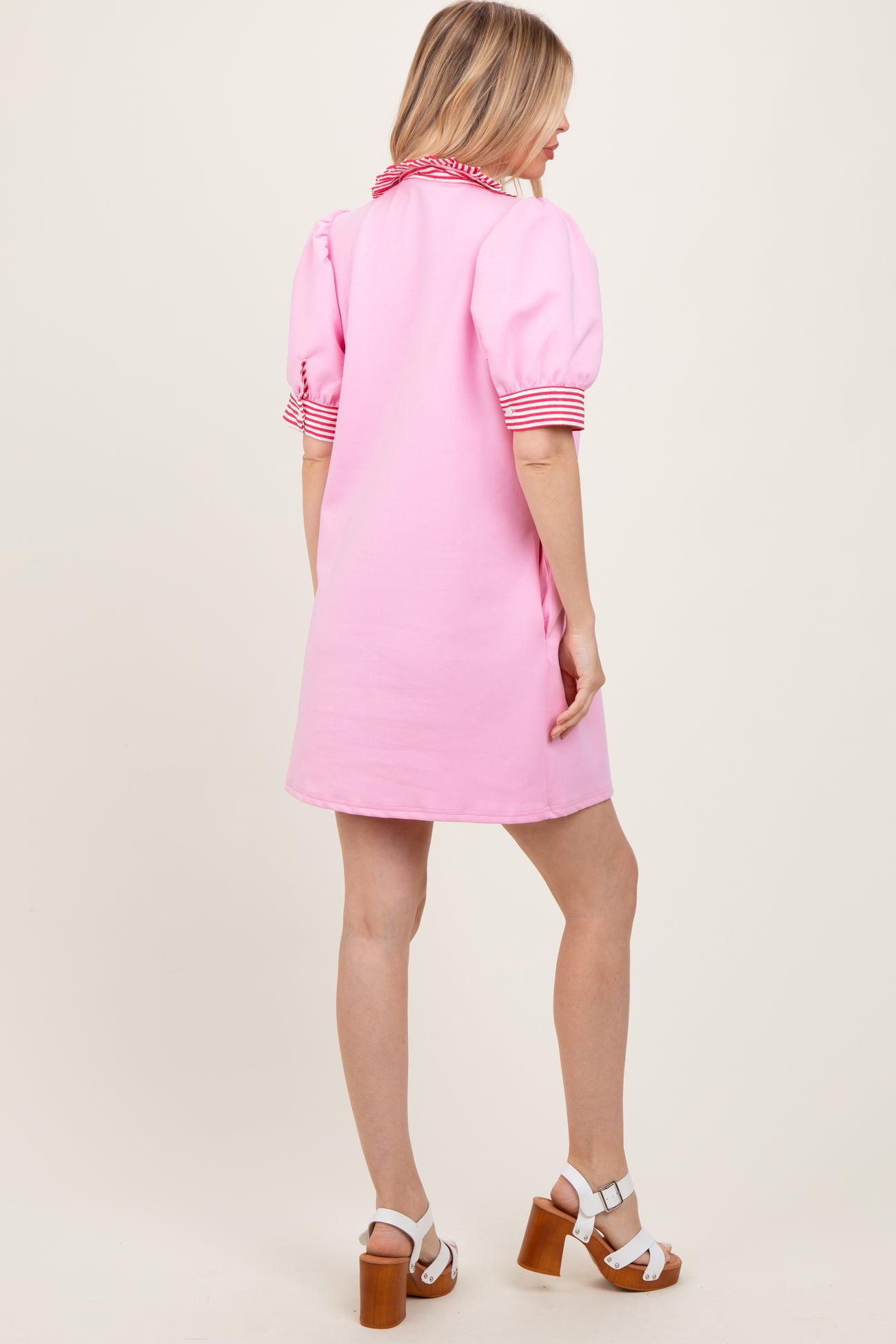 Light Pink Mock Neck Contrast Striped Trim Mini Dress
