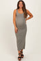 Light Taupe Mock Neck Side Slit Maternity Midi Dress