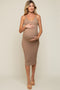 A solid knit fitted maternity midi dress featuring a fold-over turtleneck.