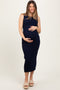 Magenta Crew Neck Flared Fit Long Sleeve Maternity Mini Dress