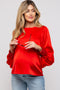 Magenta Plisse Button Up Long Sleeve Maternity Top