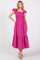 A sleeveless smocked dress featuring ruffle shoulder straps, side pockets, a ruffle hem and a square neckline.