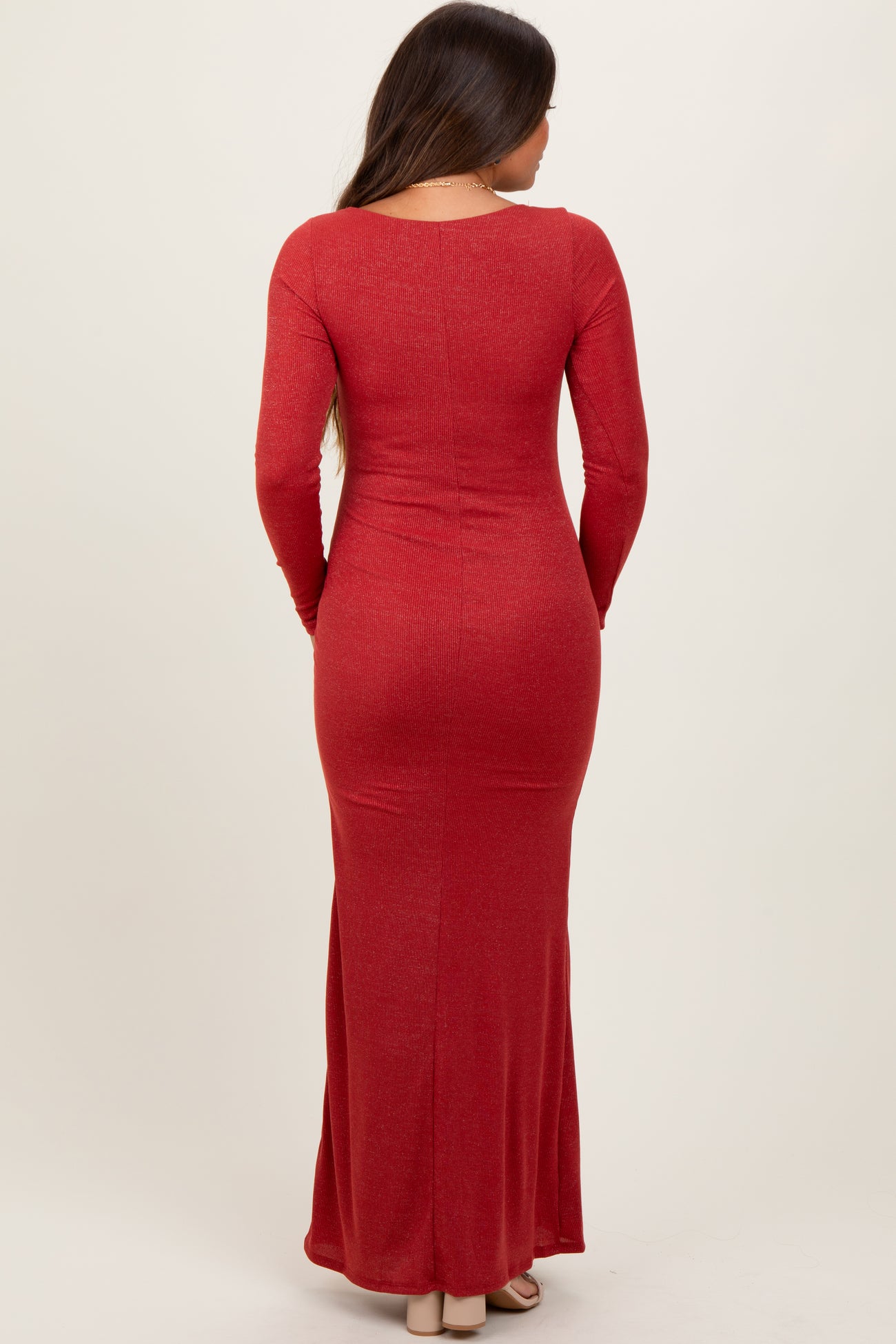 Mauve Basic Square Neck Long Sleeve Maternity Maxi Dress