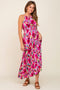 Mauve Floral Puff Sleeve Tiered Maternity Midi Dress