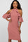 Mauve Mock Neck Ruffle Trim Fitted Maternity Dress