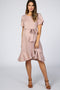 Details A polka dot printed dress with short sleeves, a sash tie waist, and a ruffle detail hemline. Content + Care
