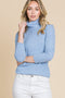 A heathered ribbed top featuring a mock neckline and long sleeves.