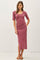 Mauve Ruched Short Sleeve Side Slit Midi Dress