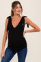 Mauve Solid Ribbed Sleeveless Tie V-Neck Maternity Top