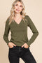 A solid fitted ruched maternity midi dress with front cutout and strap details. Dress is lined.