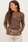 Mocha Animal Print Mesh Ruffle Neck Maternity Top