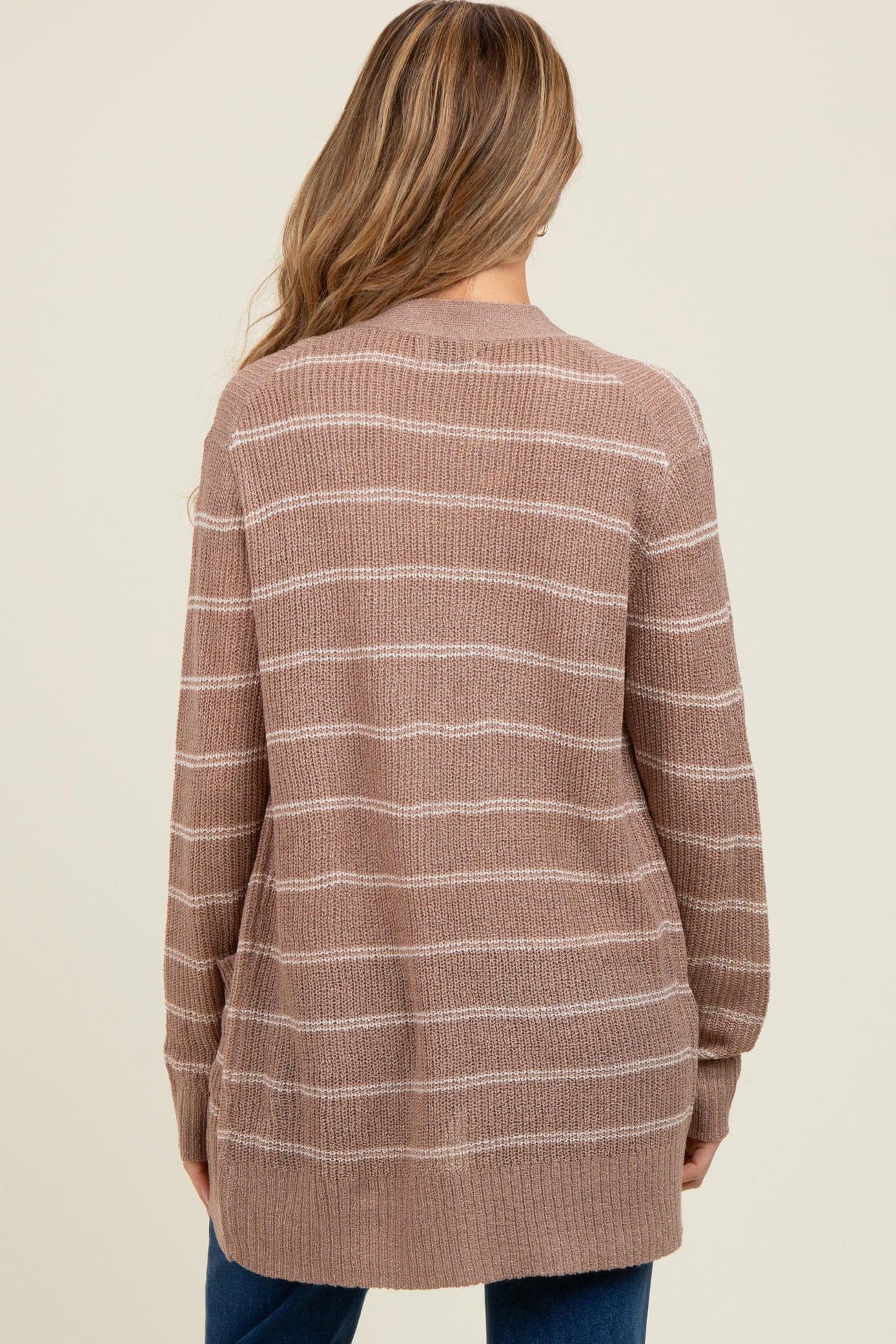Mocha Fine Knit Striped Maternity Open Cardigan
