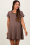 Mocha French Terry Basic Short Sleeve Maternity Mini Dress