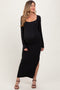 Mocha Long Sleeve Side Slit Maternity Maxi Dress